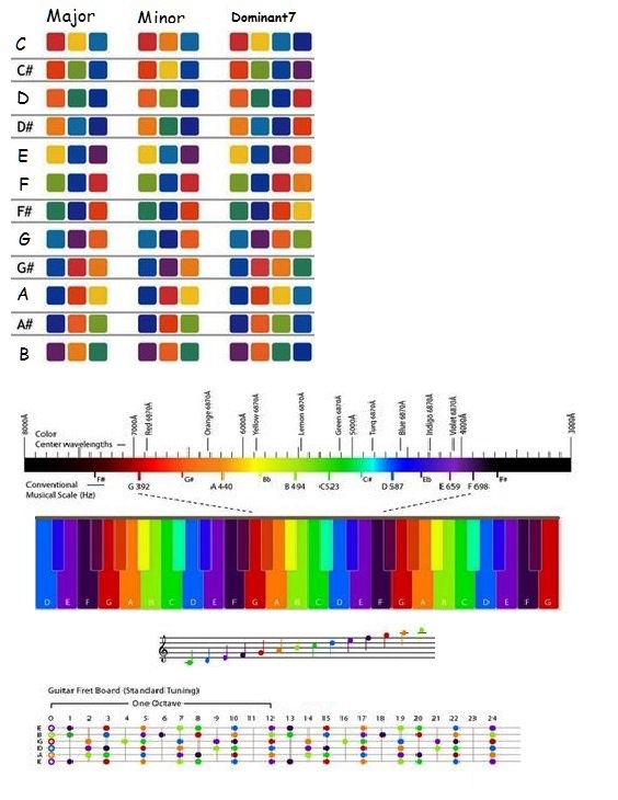 musical notes color correspondences in the visible spectrum of light