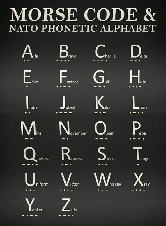 morse code, phonetic alphabet