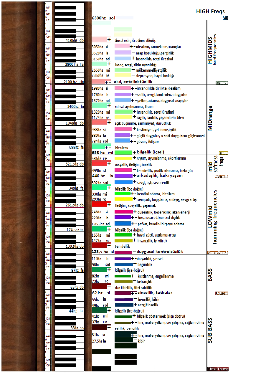 | 880hz | la | turuncu | güçlü duygular, o anki duyguguların güçlenmesi |